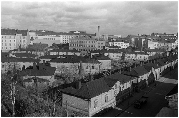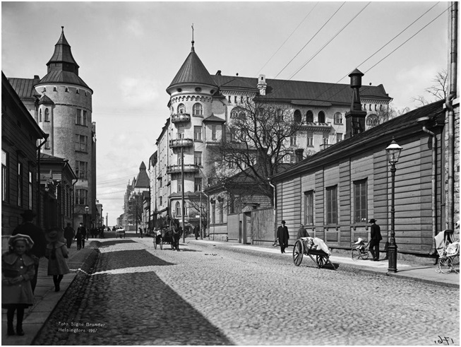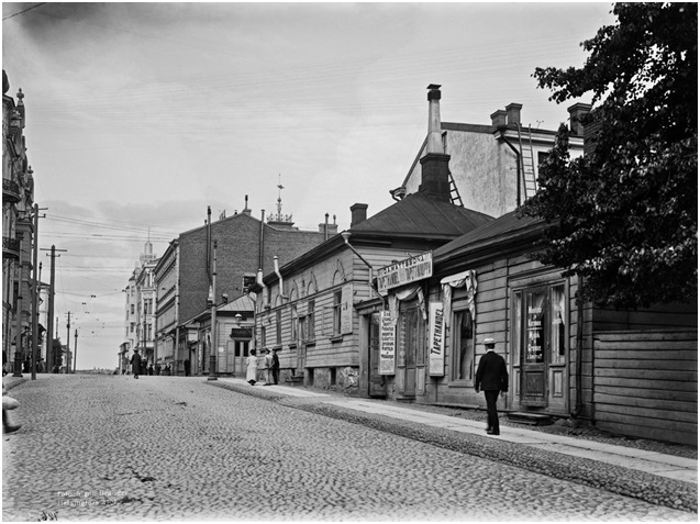 ![]() Улица Фредрикинкату. Фото: Городской музей Хельсинки Мы продолжаем серию публикаций под названием «Районы-кварталы», посвященных истории финской столицы. Как менялся облик города, его география, столичные названия? Как рос и развивался Хельсинки? Обо всем об этом можно прочитать в новой рубрике. Сегодня мы расскажем о районе Камппи. Камппи большинству известен как место расположения автобусного вокзала, а также торгового центра и крупнейшего в стране кинотеатра. Это большой по финским меркам район, где проживает более 11 000 жителей и находится без малого 30 000 рабочих мест. В прошлом, однако, эта часть города была практически нежилой. Финское название Kamppi, как и многие другие столичные топонимы, корнями уходит в шведский язык, а именно – к слову kampen, в свою очередь, являющемуся родственником английскому camp и обозначающему лагерь. От этого же слова образовано финское существительное kamppailu, борьба. Как можно догадаться, именно здесь были расположены полигоны, где происходили военные учения и боевая подготовка войск. Начиная с 1820-х годов лагерь был местом учений русской Императорской армии, и позднее на пятачке земли, где сейчас находятся здание Ласипалатси и музей современного искусства Амос Рекс, были построены т.н. Турунские казармы, которые служили нуждам российских солдат. Во время гражданской войны в Финляндии казармы были практически полностью разрушены, и их решили не восстанавливать. Сохранилось лишь одно хозяйственное помещение, которое вплоть до 2005 года служило автовокзалом. Вокзал в 2005 году переехал в подвал торгового центра Камппи, и теперь в здании бывших казарм действуют несколько баров и забегаловок с фастфудом. ![]() Горожане ищут банки с консервами в развалинах казарм после бомбежки Фото: Helsingin kaupungin museo, Gunnar Lönnqvist. На территории Камппи расположено одно из старейших столичных кладбищ, которое в народе непочтительно зовется Чумным парком – Ruttopuisto. Именно здесь в 1710 году похоронили более тысячи столичных жителей, умерших от эпидемии чумы. Сейчас в напоминание об этих мрачных временах сохранился разве что десяток могильных плит. В 1826 году на месте старинного кладбища возвели церковь, а вокруг разбили парк, ставший, несмотря на свою историю, одним из излюбленных мест летнего времяпровождения столичных жителей. Но это сейчас, а в начале XVIII века в Камппи время проводили разве что на огородах – именно здесь, на нежилых территориях, раскинулись поля и сады, принадлежавшие городским жителям. ![]() Улица Владимирская, ныне – Калеванкату. Фото: Городской музей Хельсинки В XIX веке, после того, как был осушен залив Клуувинлахти, территория начала понемногу застраиваться. Необходимо было дать свои названия улицам нового района, и первые из них были названы в честь самый почитаемых в России святых (не забываем, что в то время Великое княжество Финляндское было частью Российской Империи). Свои улицы получили святые Анна, Андрей, Владимир и Георгий. Из них на карте осталось лишь две – Аннанкату, Анненская, и Георгиевская, Yrjönkatu. После обретения Финляндией независимости Андреевскую и Владимирскую забраковали как «чересчур русские» и переименовали соответственно в Лённротинкату и Калеванкату. В свою очередь, в честь градостроителя Йохана Альбрехта Эренстрёма назвали улицу Альбертинкату. ![]() Улица Аннанкату в начале 20-го столе