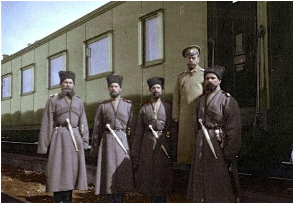 Первое официальное упоминание в Российских источниках о «казаках» относится к XVI веку, в грамоте ногайского князя Юсуфа Русскому Царю Ивану Грозному. Спасаясь от голода, холопы, которых господа отказывались кормить, массами бежали на вольные украины. Так на Руси сформировался термин «казаки» для обозначения на различных территориях самостоятельного и самоуправляемого вооружённого населения, состоящего из людей разного этнического происхождения, но преимущественно христианского вероисповедания. В XIV-XVII веках вольные люди – городовые и сторожевые казаки – несли службу на Российских границах. Казаки носили фуражки или папахи, рубахи с погонами и штаны с лампасами. Неизменной чертой Российских казаков была черкеска. Во главе станицы был станичный атаман, избираемый всеми казаками на местном казачьем Круге (сходе, раде, совете). На Круге также избирались и другие местные должностные лица (писари-дьяки, есаулы, хорунжие, сотники, урядники), которые назывались старшинами. В XVIII веке Казачество превратилось в особое привилегированное военное сословие. Из казаков формировался Собственный Его Императорского Величества Конвой. Во время Гражданской войны большинство казаков выступили против советской власти. Казачьи области стали опорой Белого движения и директивами ЦК от января 1919 года, подписанными председателем Оргбюро ЦК Я. М. Свердловым, подверглись массовым репрессиям в ходе «безпощадного массового террора». Упраздненное в 1920 году Казачество сохранило свои традиции, обычаи и самобытную культуру предков. Форменная одежда донских казаков с синими фуражками и штанами, при красном околыше и лампасах сохранилась у советских милиционеров. В ходе подготовки к Великой Отечественной войне были сняты ограничения на службу Казачества в рядах Красной армии. В 2000 году на очередном Большом Круге казаков России было принято решение о создании общественно-политического движения «Казаки России». ![]() Казаки Собственного Его Императорского Величества конвоя. Слева Лейб-казак Т. Ящик Фото pinterest.com «Однажды поезд Царя остановился у маленькой станции, чтобы пополнить запас угля и воды для локомотива. Царь спросил, сколько продлится остановка, и, узнав, что не менее получаса, решил пройтись пешком вдоль путей. Поезд должен был остановиться и забрать его по дороге. Таким образом Царь во время своих длительных поездок обезпечивал себе прогулки. Царь, как обычно, был одет в очень простую униформу. Это была солдатская блуза, подпоясанная ремнем, короткие брюки и высокие сапоги. Он шел вдоль путей и, как обычно, в прекрасном темпе. Через несколько верст на путях, на сложенных в штабель шпалах сидели дети. Они знали, что идет Царский поезд и, неотрывным взглядом, смотрели на черный дым, который валил из трубы локомотива. Я думаю, что они не заметили Императора и его спутников, только что прошедших мимо них, во всяком случае, они и не подумали, что это был Царь всея Руси. Некоторое время спустя мы подошли к старой путевой обходчице, которая следила за железнодорожным переездом. Она закрыла шлагбаум и стояла перед своим маленьким домиком с флажком, который должен был показывать «путь свободен». «Проходите! Проходите! Быстрее... идет Царский поезд!». Она совсем не смотрела на небольшую группу людей, а только вперед на путь. Царь засмеялся и встал рядом с 