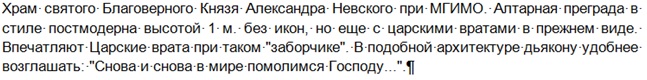 ![]() ПРАВИЛО 75. ШЕСТОГО ВСЕЛЕНСКОГО СОБОРА Желаем, чтобы приходящие в церковь для пения не употребляли безчинных воплей, не вынуждали из себя неестественнаго крика, и не вводили ничего несообразнаго и несвойственнаго церкви: но с великим вниманием и умилением приносли Псалмопения Богу, назирающему сокровенное. Ибо Священное слово поучало сынов Израилевых быть благоговейными. Аристен. Не допускается беЗчинного крика поющих, и также не допускается вводить в церковь несообразное. С сокрушением и многим вниманием должно совершать песнопения Богу, назирающему сокровенное, и не употреблять беЗчинных воплей, не вынуждать из себя неестественного крика: ибо священное слово поучало сынов Израилевых быти благоговейными. Также не петь ничего несвойственного и несообразного с церковным установлением. Славянская кормчая. Пение умиленно пети, ничтоже прилагая. БеЗчинныи вопль поющего в церкви, неприятен. Тако же и прилагая и к церковному пению неподобная, неприятен. Толкование. Со умилением и со вниманием многим, подобает пение приносити, тайных видцу Богу, и не кликати беЗчинным воплем, и естество понуждати на вопль. Благоговейным бо и смиренным быти сыном израилевым, священное научает слово. Но ни пети ничтоже неподобного, и церковному строению несочетанного. ![]() ![]() ПРАВИЛО 76. Никто не должен внутри священных оград корчемницу, или различныя снеди поставлять, или иныя купли производить, сохраняя благоговение к церквам. Ибо Спаситель наш и Бог, житием своим во плоти поучая нас, повелел не творить дому Отца Своего домом купли. Он и пеняжникам рассыпал пенязи, и изгнал творящих святый храм мирским местом. Посему, если кто обличен в реченом преступлении: да будет отлучен. Зонара.Храм мой, сказал Господь иудеям, храм молитвы наречется: вы же сотвористе и вертеп разбойником (Маф. 21, 13). Итак, чтобы сего же не было сказано и верным, отцы запретили внутри священных оград поставлять корчемницы, или предлагать на продажу съестное, или что-либо другое. Аристен. В священной ограде не должно устраивать корчемницу и неприлично продавать снеди. Делающий то и другое подлежит отлучению. Спаситель наш и Бог заповедал дома Божия не делать домом купли. Посему внутри священных оград не должно поставлять корчемницу и предлагать для продажи различные снеди, или производить другую какую продажу. Итак, если кто окажется делающим что-либо такое, должен будет подлежать отлучению. Славянская кормчая. Корчмам и куплям в притворах церковных не быти. Во священнем притворе, корчемница да не ставится, и продаемая брашна суетна суть, и обое се творя да отлучится. Толкование. Спас наш и Бог повеле Божия дому, не творити дому купленного, рекше ни купити, ни продаяти в нем: сего ради не подобает внутрь священных притвор церковных, корчемницы составляти: рекше вина продаяти, ниже брашен предлагати на продание, ни иного никоего же купления творити. Аще же кто таковое что явится согрешая, да отлучится. Источник: https://3rm.info/ ![]() Метание бисера и кощунство Патриарх Московский и всея Руси Кирилл вручил главе Управления мусульман Кавказа шейхульисламу гаджи Аллахшукюру Пашазаде орден Преподобного Серафима Саровского I степени ![]() Бог подождёт! ![]() «Монашеское правило» певца и шоумена иеромонаха Фотия. Помрачение умов и сердец церковного священноначалия, монашества и священства. Гос