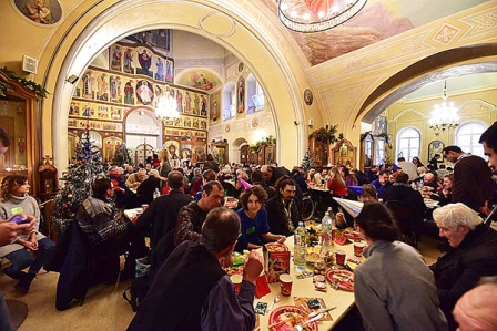 ![]() ПРАВИЛО 74. ШЕСТОГО ВСЕЛЕНСКОГО СОБОРА Не должно в местах посвященных Господу, или в церквах, совершать так называемые трапезы братолюбия, и внутри храма есть, и ложе постилать. Сие же творить дерзающие, или да престанут, или да будут отлучены. Зонара. Был древний обычай, по приобщении Божественных Таин, учреждать общие трапезы, на которых предлагалась пища и питие, при чем нужное для сего доставляли богатые и приглашали беднейших. Об этом упоминает и Великий Павел в Послании к Коринфянам, порицая их за то, что они вкушали пищу каждый отдельно и, не дожидаясь других, и присовокупляя: кийждо бо свою вечерю предваряет в снедение, и ов убо алчет, ов же упивается. Еда бо домов не имате во еже ясти и пити; или о церкви Божией нерадите и срамляете не имущия (1Кор. 11, 21. 22)? Аристен. В местах, посвященных Господу, трапезы братолюбия не совершаются, не постилаются и ложа. Кто не прекратит сего, тот полежит отлучению. Дом Божий не должно считать обыкновенным домом и в нем совершать так называемые трапезы братолюбия, вкушать пищу в нем, и постилать ложе. Кто дерзнет это делать, подлежит отлучению, если не престанет. Славянская кормчая. Пирове в церквах не творятся, ни трапезы не поставляются: но котории аще останутся от того, да отлучатся. Толкование. Не подобает Божия дому общего дому творити, ни трапезы поставляти, ни внутрь его ясти. Дерзнувыи же сие творити, аще не престанет, да отлучится.