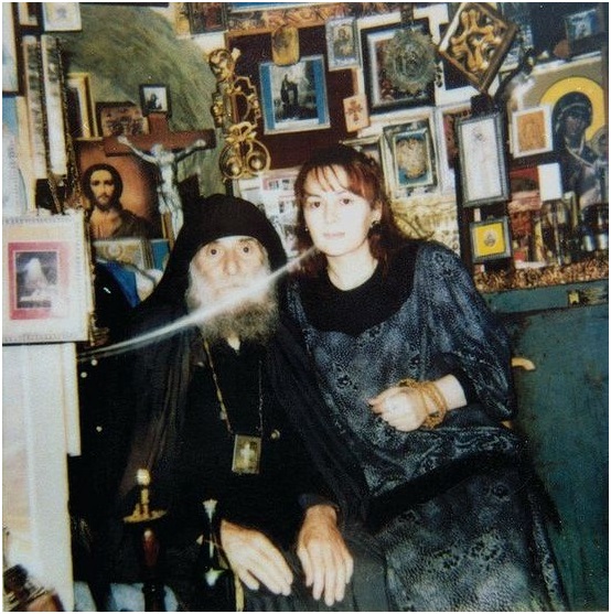 Личные вещи старца ГавриилаЧто же касается моих операций, то все они были перенесены мною благодаря заступничеству старца! Несмотря на то, что он ушел в вечность и физически его нет с нами, он не оставляет нас, ходит сегодня по земле! Во время каждой операции он приходит ко мне и благословляет. Однажды было видение: он сидел в своей келье среди многих святых и говорил мне: – Иди ко мне, Манана, я тебя благословлю! Окроплю водой Иордана! Осеню крестом Животворящего Столпа! Он меня благословил и потом, толкнув меня медленно рукой, сказал: – Уходи сейчас, пока тебе рано! Возвращайся назад, благословляю! Я открываю глаза – нахожусь на больничной койке! Вернулась! Его молитвами! Помню, однажды я и мой муж отвезли к старцу Гавриилу одного нашего друга, Отара. Он был совершенно невоцерковленным и далеким от веры. По дорогое в Самтавро я говорила ему, что везем его к прозорливому святому старцу. Как только мы зашли в келью старца, он посмотрел на нас и обратился к моему мужу и Отару: – Преклоните колени, грешники! Они непроизвольно преклонились. Поскольку наш Отар был пухленьким, он с трудом дышал, но оба – и мой муж, и он – преклонились до земли! Посмотрев на них, я начала смеяться, а старец говорит: – Манана, молись! Он сейчас здесь! Скоро старец велел им встать. Потом он обнял их, благословил и, посмотрев на Отара, сказал: – Ты скоро… уйдешь далеко! Но не бойся, я помолюсь за тебя, и ты спасешься! Потом вдруг он опять начал юродствовать: пригласив нас за стол, он стал петь арии из опер, повторяя, что хочет пить! Выпил стакан вина и, простирая руки к небесам, продолжал петь, приговаривая, какая я красивая и прекрасная. Конечно же, когда мы уехали оттуда, Отар всю дорогу спрашивал, почему так старец вел себя и какой же он святой, если пьет, женщин красивыми называет и еще арии из опер поет. Я призналась Отару, что все это старец делал потому, что почувствовал, как я вам говорила, что он прозорливый и святой. К моему удивлению, несмотря на то, что Отар все же не понимал, почему старец так себя вел, он сказал, что почувствовал там какую-то невидимую силу. А через месяц Отар скончался! Я уверена, что молитвы старца спасли его душу, ведь сам он пообещал ему, что он будет молиться о его спасении. ![]() Старец Гавриил и Манана Хорбаладзе Есть одна замечательная для меня фотография. На ней старец Гавриил и я. Я очень хотела сфотографироваться с ним, но не осмеливалась, думала про себя, как с такой грешницей, как я, старец сфотографируется. Если он благословит сфотографироваться, то я сяду на пол, у ног старца Гавриила, и так запечатлеемся. Захожу к нему в келью, пообщались, и я дерзнула: – Батюшка, простите меня, я очень хочу сфотографироваться с вами. Благословите! Старец сразу привстал, согласился, и я ему своими руками надела те туфли, которые сейчас выставлены в музее монастыря Самтавро. Батюшка велел мне сесть у его изголовья и так сфотографироваться. Мы сфотографировались. Я благодарю Господа за то, что допустил такое: запечатлелась на фотографии с любимым батюшкой – святым Гавриилом. Сколько раз он вымаливал меня! А скольких людей он спасает, вселяет в них надежду, одному Богу известно. Однажды, когда он как-то сказал, что скоро преставится, я начала плакать, сказала ему, что не смогу жить без него, что он нам очень нужен! Он прослезился и сказал: – Не переживай, моя Мананико, я в