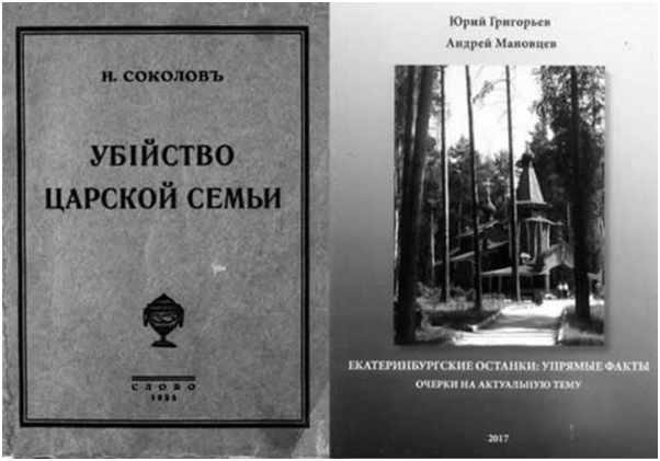 Книги следователя Н.А. Соколова (Берлин, 1925) А.А. Мановцева и Ю.А. Григорьева (СПб., 2017) – В беседе с Л. Болотиным, давним исследователем Царского Дела, я поинтересовалась его мнением о Вашем вкладе и участии в ситуации, сложившейся вокруг екатеринбургских останков. Он отметил: «Важно, что Андрей Анатольевич Мановцев своей просветительской деятельностью в Екатеринбурге и принципиальной позицией существенно восполняет уход в мир иной моего друга – Анатолия Михайловича Верховского». Расскажите, пожалуйста, об этом человеке. Были ли Вы лично знакомы? Повлиял ли он как-то на Вас? Как вообще обстоит ситуация с единомышленниками? – О! Оценка Леонида Евгеньевича слишком высока, можно сказать, смущает меня. Об Анатолии Михайловиче Верховском я, к стыду своему, узнал совсем недавно. Это был подвижник, герой, без которого (а я и не знал! И многие, очень многие не знают!) немыслима история почитания Царственных Страстотерпцев в России конца ХХ века. Говорить о нем мельком – нехорошо. С Вашего позволения, мы приведем интернет-ссылку на публикацию памяти Анатолия Михайловича: http://nashaepoha.ru/?id=6331&lang=1&page=articles. Опосредованно, конечно, Анатолий Михайлович на меня повлиял. А непосредственно – горячей поддержкой, добрым словом, помощью, советом – очень повлияла его вдова, Светлана Николаевна Верховская, которая сумела найти меня весной, в связи с первой моей публикацией по данной проблеме, а именно – размышлениями по поводу доклада владыки Тихона (Шевкунова) на конференции в Сологубовке (см.: Царские лжеостанки: Размышления о докладе владыки Тихона (Шевкунова). Что я могу сказать о единомышленниках? Активных, к сожалению, мало. Т. е. я совершенно не предполагал оказаться среди «самых». Но просто единомышленников – очень много! В храме подойдут и спросят: это Вы такой-то? – ну, да. И так благодарят, что прямо светло на душе становится. – Как Вы считаете, чем опасно признание Царскими мощами останков, которые таковыми не являются? Как это может повлиять лично на признавших, на наши Церковь и государство и, возможно, на мировые процессы? Связано ли расследование убийства Царской Семьи и раскрытие правды о нем с проблемой восстановления Монархии в России? – Вспомним, что было через месяц после захоронения ложных останков в Петропавловском соборе Санкт-Петербурга – кризис! А сейчас, если их признает и Церковь? На мой взгляд, это станет прежде всего дурным прецедентом ее несамостоятельности (хуже, чем при атеистической власти), выполнения Церковью «заказа со стороны», а что с недоброй стороны – догадаться нетрудно. Каким политическим или финансовым сообществам это нужно – сразу не ответишь. Но понятно, что организатор «троянского коня» (как называл проблему останков А. М. Верховский) – «князь, господствующий в воздухе» (см.: Еф. 2, 2). К сожалению, очень часто среди церковных людей – даже порой среди почитающих Царственных Мучеников – можно встретить безразличное отношение к этому вопросу: мол, тут дело науки... Но так обличается недостаток любви к самым родным для нас святым – Царской Семье. Они нас любят и открыты для любви, а тут все кости и ДНК, ДНК и кости! Если бы верное и глубокое отношение к Царской Семье прочно укоренилось в народе, то и в голову никому бы не пришло рассматривать всерьез версию, исходящую от цареубийц! И так же как цареубийство совершилось, не