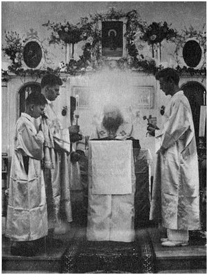 ![]() Его можно смело называть Всеправославным епископом. Ангелом во плоти. Его сердце жило не только тревогами и проблемами Русской эмигрантской общины и не только мыслями о судьбе покинутой Родины, но и тревогой о Православии как таковом. Своей удивительной жизнью он многое сказал и Европе, и Америке, и Китаю — о любви, о милосердии, о монашеском подвиге. И об Истинной Церкви, которой принадлежал всей душой. «Весь от Бога освящен священнодействием Пречистых Тайн», — так об Иоанне говорится в Тропаре. Он любил служить как простой священник и потреблять Святые Дары после службы. Потреблял долго и в это время молился над Кровью Иисусовой. Он стремился жить Церковью ежесекундно и стал от неё не отделим. Случаи исцелений по молитвам владыки Иоанна трудно исчислить. Посещая больницы, он мог, по просьбе родных или самого больного, остановиться надолго для молитвы у постели католика, протестанта или иудея. Часто, очень часто безнадёжные дотоле больные выписывались на следующий день из клиники при неописуемом всеобщем удивлении. Отец Иоанн строго постился, каждый день служил Божественную Литургию и Причащался, со дня монашеского пострига никогда не ложился, иногда его находили утром задремавшим на полу перед иконами. Его кротость и смирение напоминали те, что увековечены в житиях Величайших аскетов и пустынников. Отец Иоанн был редким молитвенником, он так погружался в молитву, будто просто беседовал с Господом, Пресвятой Богородицей, Ангелами и святыми, которые предстояли его духовным очам. Евангельские события были известны ему так, словно происходили на его глазах. ![]() Во время богослужения в Тунисе (1952 г.) Он считал, Отечество не погибло, оно восстанет так же, как восставало и раньше. Восстанет, когда разгорится Вера на Русской земле, когда люди духовно переродятся, когда снова станет им дорога ясная, твердая Вера в правду слов Спасителя: «Ищите прежде Царствия Божия и Правды Его и вся сия приложатся вам». «…Преступление против Царя Николая II еще тем страшнее и греховнее, что вместе с Ним убита вся Его Семья, ни в чем не повинные дети! Такие преступления не остаются безнаказанными. Они вопиют к Небу и низводят Божий гнев на землю. Пред Униженным, Оклеветанным и Умученным должна склониться Русь. Тогда Царь-Мученик возымеет дерзновение к Богу, и молитва Его спасет Русскую землю от переносимых ею бедствий. Тогда Царь-Мученик и Его Сострадальцы станут новыми Небесными защитниками Святой Руси. Невинно пролитая кровь возродит Россию и осенит ее новой славой!». Владыка Иоанн предвидел свою кончину. 19 июня (2 июля по новому стилю) 1966 года в день памяти апостола Иуды, во время архипастырского посещения города Сиэтла с чудотворной иконой Божией Матери Курско-Коренной, этой Одигитрией Русского Зарубежья, Великий праведник отошел ко Господу. После кончины владыки один голландский Православный священник с сокрушенным сердцем писал: «У меня нет и не будет больше духовного отца, который звонил бы мне в полночь с другого континента и говорил: “Иди теперь спать. То, о чем ты молишься, получишь”». Четырехдневное бдение над телом Владыки венчала Погребальная служба. Проводившие службу епископы не могли сдерживать рыданий. Удивительно, что при этом храм наполняла тихая радость. Очевидцы отмечали: казалось, мы присутствовали не на отпевании, а на откр