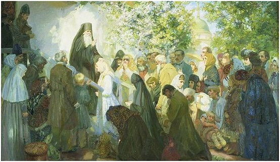 ![]() Преподобный Амвросий Оптинский Краткое житие преподобного Амвросия Преподобный Амвросий (в миру Александр Михайлович Гренков) родился в с. Большая Липовица Тамбовской губернии в семье пономаря. Во время обучения в духовной семинарии Александр Михайлович смертельно заболел и дал Господу обет в случае выздоровления поступить в монастырь. Он поправился, но свое намерение исполнил только спустя 4 года, которые прошли в борьбе между голосом совести и привязанностью к миру. В 1839 г. Александр Михайлович посетил троекуровского старца Илариона, который сказал ему: «Иди в Оптину. Там ты нужен». Осенью 1839 г. Александр Михайлович прибыл в Оптину Пустынь и в марте 1840 г. был принят в число братства. Одним из его послушаний было чтение правила старцу Льву, который перед смертью поручил его попечению старца Макария. В 1842 г. Александр Михайлович был пострижен в монашество и наречен Амвросием. В 1843 г. состоялось посвящение его в иеродиакона, а в 1845 г. в иеромонаха. В 1846 г. в возрасте 34 лет Амвросий становится помощником старца Макария в духовничестве. Вскоре он тяжело заболел, вследствие неспособности выполнять монастырские послушания, был выведен из штата обители. Тяжкие болезни не оставляли преп. Амвросия до конца жизни, однако он считал их необходимыми для спасения. После кончины старца Макария иером. Амвросий становится его преемником. К келье старца Амвросия начинают стекаться за советом и утешением люди всех сословий и возрастов со всей России. По всеобщему и единодушному признанию старец был глубочайшим знатоком сокровенных движений души, опытнейшим разрешителем духовных и житейских недоумений, мудрейшим и любвиобильнейшим наставником. В начале 1870-х гг. преп. Амвросием была основана женская Шамординская Казанская обитель для малоимущих, куда в 1890 г. старец переехал и где оставался до самой смерти. Тропарь, глас 5 Яко к целебному источнику / притекаем к тебе, Амвросие, отче наш, / ты бо на путь спасения нас верно наставляеши, / молитвами от бед и напастей охраняеши, / в телесных и душевных скорбех утешаеши, / паче же смирению, терпению и любви научаеши; / моли Человеколюбца Христа / и Заступницу усердную / спастися душам нашим. Кондак, глас 2 Завет Пастыреначальника исполнив, / старчества благодать наследовал еси, / болезнуя сердцем о всех, с верою притекающих к тебе. / Темже и мы, чада твоя, с любовию вопием ти: / отче святый Амвросие, / моли Христа Бога спастися душам нашим. ПОУЧЕНИЯ Без внушения страха Божия чем детей ни занимай — не принесет желаемых плодов в отношении доброй нравственности и благоустроенной жизни. Укрепляйте себя верой и надеждой на милосердие Божие. Видеть себя хуже других — служит началом смирения. Если делаешь добро, то должно его делать только лишь для Бога, почему на неблагодарность людей не должно обращать никакого внимания. Нужно жить — не тужить, никого не осуждать, никому не досаждать, и всем мое почтение. Благое говорить — серебро рассыпать, а благоразумное молчание — золото. Не люби слушать о недостатках других, и у тебя будет меньше своих. Кто нас корит, тот нам дарит. А кто хвалит, тот у нас крадет. Нужно иметь внимание к своей внутренней жизни, так чтобы не замечать того, что делается вокруг тебя. Тогда осуждать не будешь. Нужно заставлять себя, хотя и против воли, делать какое-либо добро врагам своим, а главное — н