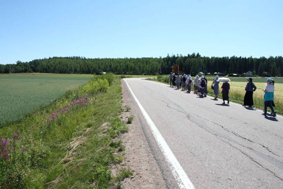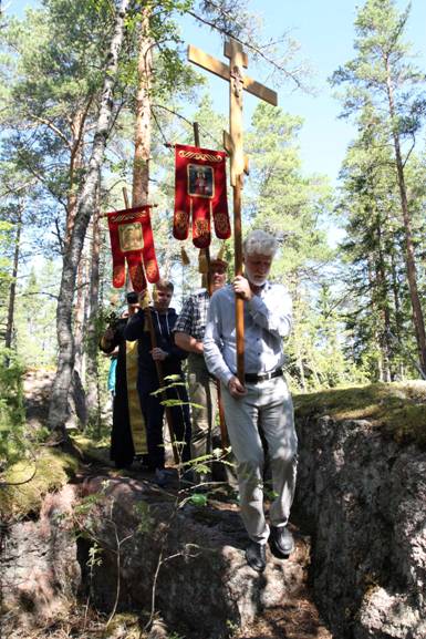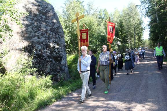 ![]() Прости нас Господи, простите нас Государь Николай Александрович, Государыня Александра Фёдоровна, Царевич Алексей Великие Княжны Ольга, Татьяна, Мария, Анастасия и их верные слуги! Цареубийство продолжается. Советская власть никуда не ушла, она правит государством, Русским народом, обогатив себя награбленным народный достоянием. Истина – что произошло в 1917 году, с какой целью, кем – негласно запрещена и всячески замалчивается СМИ. Пусть будут приняты наши Крестные ходы и покаянные молитвы за обретение могучей России, которую оставил нам род Романовых. Крестный ход организован по благословению Архиепископа Хельсинки и Финляндии Лео (Макконен), разрешение полиции было получено. Молитвенно с нами были постоянные участники Крестных ходов р. Б. Вадим и Галина из Канады, р. Б. Георгий, р. Б. Илия из СПБ, не приехавшие по причине закрытия границ. ![]() Перед началом панихиды у могилы А. А. Танеевой, монахини Марии в Хельсинки. Справа р. Б. Елена и Наталия, которая как и раньше напекла нам пирогов. ![]() ![]() Царский священник Олег Тихонов ![]() О трагическом дне убийства Царской семьи, об их пребывании в Финляндии, об их жертвенном подвиге во благо России и Русского народа говорилось на протяжении 200 км пути от Хельсинки до Виройок. ![]() ![]() Перед началом Крестного хода. Пютерлахти ![]()