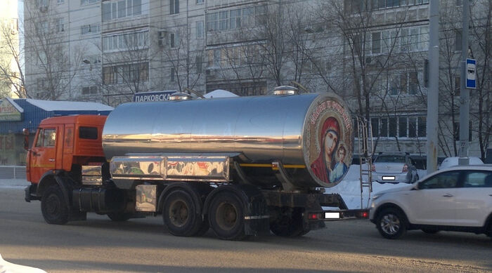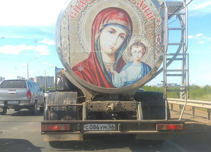 «А Васька слушает да… шьет» Владимир Немыченков ![]() Скатерть прямоугольная «Всевышний – сила моя» Прошу у читателей портала Православие.ру прощения за навязчивость, но, к сожалению, реалии нашей жизни вновь заставляют писать на эту давнюю, больную и очень болезненную для меня тему профанации священных изображений, а говоря проще, об осквернении православных икон вследствие использования их репродукций где попало ради коммерческой выгоды или «прикола ради». Ровно год назад, в августе 2020 года, закончилась публикация большой серии статей, написанных в соавторстве с моим единомышленником священником Алексеем Кнутовым. Именно по его инициативе нами были подготовлены и опубликованы «Рекомендации по благочестивому обращению со священными изображениями»[1], которые завершали обсуждение проблем современного иконопочитания на портале. Мы благодарны редакции Православия.ру за предоставленную возможность высказать свою позицию. Естественно, мы надеялись, что будем услышаны, поняты, поддержаны нашими читателями, что обсуждение проблем неумеренного, бездумного и, прямо скажем, часто неумного использования священных изображений в церковной и околоцерковной среде (в виде «товаров для православных») сократится, что настоятели православных приходов и монастырей будут внимательнее относиться к подбору ассортимента товаров для церковных лавок и монастырских магазинов, что церковные и православные издательства будут искать другие средства для оформления обложек своих книг, календарей и т.д. и т.п. Мы также надеялись, что производители «товаров для православных» проявят большее уважение к православным святыням, и если не прекратят совсем, то станут хотя бы реже использовать священные изображения на своих товарах, не являющихся иконами и, соответственно, не предназначенных для молитвы и поклонения. Насколько ситуация изменилась в церковных лавках, судить могут сами читатели. Сегодня речь пойдет о другом. Начнем с примеров. Читатели могут мне не поверить, но я не выискиваю их специально – они сами «лезут на глаза». Наверное, многие видели в интернете подборки фотографий и видеороликов типа «Эту страну не победить!» о некоторых забавных странностях жизни в России. Видел и я. В одной из таких подборок попался на глаза видеоролик с автоцистерной, «украшенной» иконой Богородицы. Потом нашлись и фотографии этого «феномена». ![]() oooo