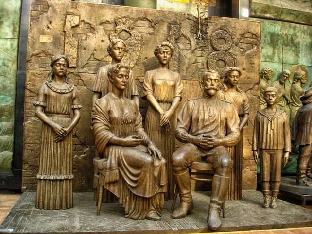 | На днях обнаружила, что интернет-пространство зачищено от информации о событиях в Самодержавной России, от статей, фотографий Царской семьи и появились наглые, кощунственные их изображения.            Скульптурное изображение - католическая традиция, это изображения плоти и только плоти, причем - грубо, натуралистично. Посмотрите в глаза медному изваянию и убедитесь, что это идол! Всё это напоминает события 1917 года, когда с жестокостью уничтожалось всё, что было связано с именем Царя Николая II – книги, фотографии, плакаты, арестовывали, убивали не в чём не повинных людей за Царское имя. Страхом, жестокостью Святая Русь была уничтожена большевиками в 1917 году. Нынешнее государство называется Российская Федерация, и Россия со своей историей, идеологией в ней не нужны, они для нее даже опасны, с этой целью идёт вторая стадия уничтожения людей и государства уже биологическим оружием. Но напрасны потуги мировой закулисы. Россия была есть и будет! Она сильна и не победима внутренним духом Русских Православных людей. Пресвятая Богородица, святые Царственные мученики, Новомученики и весь сонм святых в России просиявших, молят Бога о нас!  Александровский Дворец Государь Николай II был примерным отцом для своих пятерых детей. Пьер Жильяр: «В обыкновенное время Государь видел Своих Детей довольно мало; Его занятия и требования Придворной жизни мешали ему отдавать им все то время, которое Он хотел бы им посвятить. Он всецело передал Императрице заботу о их воспитании и в редкие минуты близости с ними любил с полным душевным спокойствием наслаждаться их присутствием. Он старался тогда отстранить от себя все заботы, сопряженные с той громадной ответственностью, которая тяготела над ним; Он старался забыть на время, что Он Царь, и быть только Отцом. Отношения Августейших детей с Государем были прелестны. Он был для них одновременно Царем, Отцом и товарищем. Чувства, испытываемое, ими к Нему, видоизменялись в зависимости от обстоятельств. Они никогда не ошибались как в каждом отдельном случае относиться к Отцу и какое выражение данному случаю подобает. Их чувство переходило от религиозного поклонения до полной доверчивости и самой сердечной дружбы. Он ведь был для них то Тем, перед которым почтительно преклонялись Министры, Высшие церковные иерархи, Великие князья и Сама Их Мать, то Отцом, сердце Которого с такой добротой раскрывалось навстречу Их заботам или огорчениям, то, наконец, Тем, Кто вдали от нескромных глаз умел при случае так весело присоединиться к их молодым забавам». Флигель-адъютант А. Мордвинов: «Государь был, конечно, счастлив в Своей Семье, как только может быть счастлив человек, обладающий именно такой идеально сплоченной, любящей Семьей... Но удовлетворяться одним семейным счастьем может не всякий; другая обширная семья - Его Родина, которой Государь стремился служить не только потому, что судьба и рождение поставили Его во главе страны, но и просто как Русский, - занимала Его мысли и вызывала скрытые, глубоко мучительные переживания...». А. А. Танеева: «Жизнь Царской семьи была гармоничной, непоколебимыми узами Великие Княжны были привязаны к своим родителям, к Наследнику и друг к другу. Все Царские дети получили религиозное воспитание. Особой их чертой была горячая любовь к Отечеству. Страна, в которой они родились, была ими так